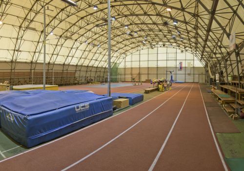This facility which was renovated in 2012 is primarily intended for winter training. In 2019, the membrane roof was replaced, and in 2020 the heating system. It is possible to practice running and jumping, and some throwing events. The facility also has two changing rooms and can accommodate up to 400 spectators.