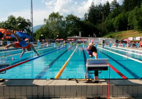 Under Obla Gorica, a forested glacial moraine ridge, the Radovljica swimming pool was built to designs by architect Ivan Vurnik in 1933. The swimming centre has changed and developed over the decades since, but today it has grown into a modern and attractive sports-recreational and tourist complex that meets modern standards, promoting the high-quality future development of sports activities and tourism. The swimming centre has three swimming pools and a well-maintained campsite. In the immediate vicinity, there is a diverse sports infrastructure and one of the most beautiful mediaeval old towns. The complex consisting of three pools enables a variety of activities for individual sports, such as swimming, para swimming, distance swimming, synchronised swimming, water polo, triathlon and diving.