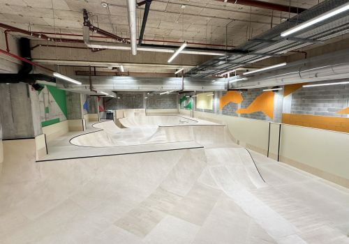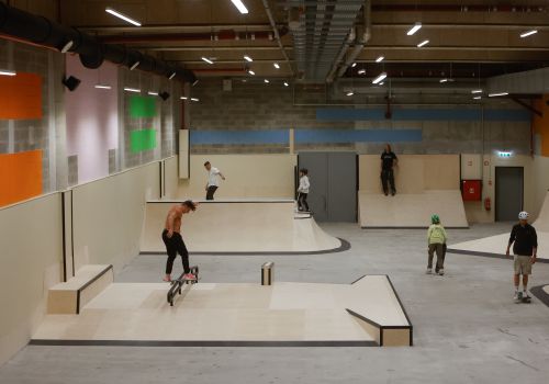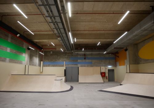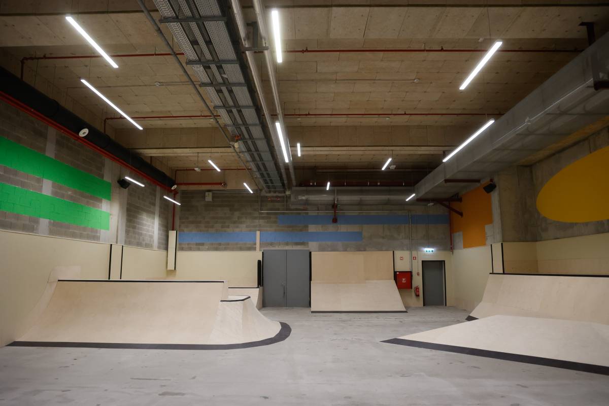 The Stožice Urban Sports Center is the only modern public indoor facility dedicated to urban sports (skateboarding, rollerblading, roller skating, scootering, BMX biking) in Slovenia. It is constructed of wood with individual details made of metal, concrete, and granite. It is located under the eastern stands of the Stožice Stadium and thus represents an interesting architectural adaptation of the existing underground parking space. The Urban Sports Center has two separate areas connected by a mezzanine, which serves as the main entrance and social area. The larger space features a street section with street elements, while the smaller space features a flow section with flow elements. In addition to the fixed elements, both sections also feature smaller movable elements, which further enhance the Urban Sports Center and allow it to be adapted to the different needs of users. The Urban Sports Center is intended for both free training and courses and training sessions for various urban sports clubs. Helmets are mandatory for users under the age of 18. Other protective equipment is recommended.