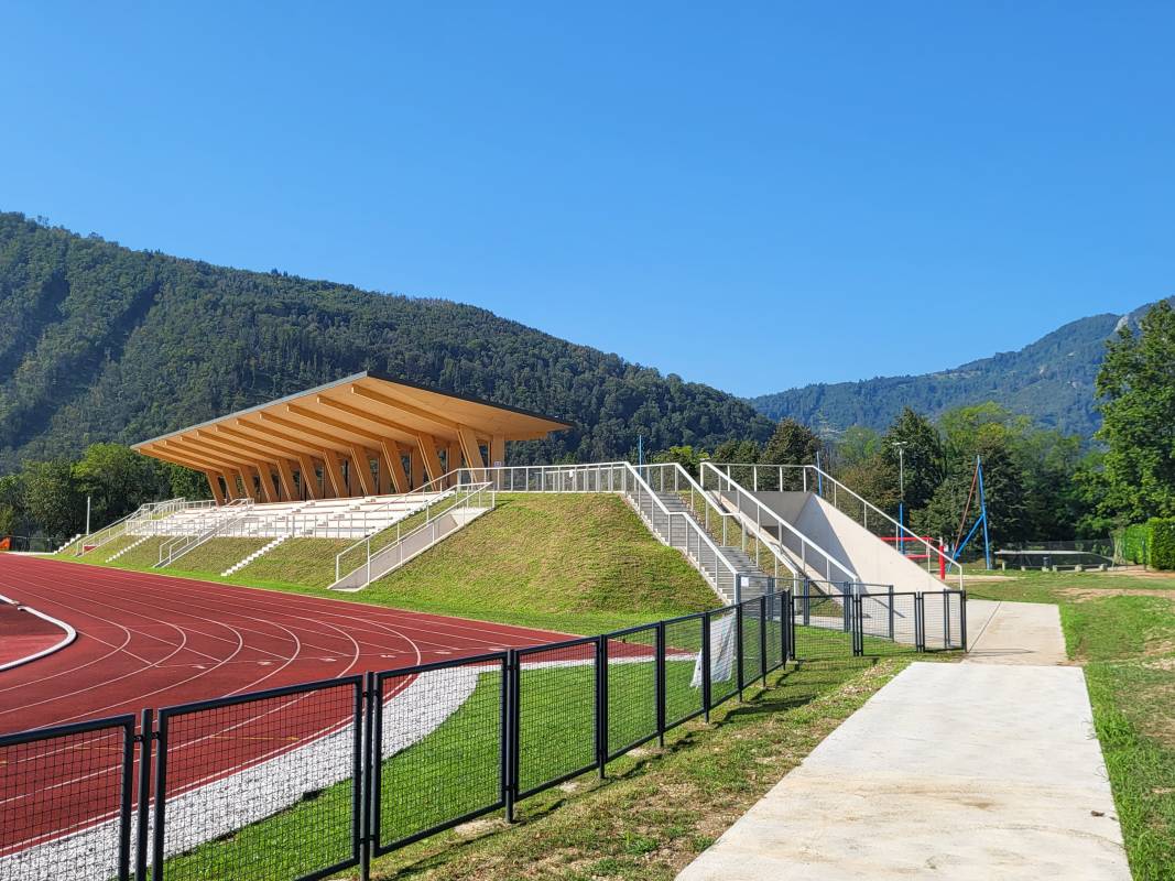Športni park Brajda obsega atletski in nogometni stadion, manjše pomožno nogometno igrišče, večnamensko igrišče, zunanje košarkarsko igrišče, igrišče za odbojko na mivki, pumptrack, teniški igrišči in spremljajoče objekte. Atletski stadion ima šest 400-meterskih tekaških stez ter skakališča z napravami za skok v daljavo, troskok, skok v višino in skok s palico. Atletsko metališče omogoča vadbo meta kopja in diska in kladiva. Nogometni stadion ima glavno (108 m x 68 m) in pomožno nogometno igrišče. Tribuna ima 500 sedežev, pod tribuno so večnamenski prostori s štirimi garderobami. Večnamensko športno igrišče je prekrito s plastično podlago in omogoča igranje košarke (dve polji), inline hokeja in drugih ekipnih športov. Zunanje košarkarsko igrišče z dvema košema je prekrito z akrilnim premazom. Igrišče za odbojko na mivki mer 22 x 14 metrov ima mivko, certificirano za odbojko na mivki, igrišče ima tribune a 150 sedeži. V športnem parku sta tudi dve teniški igrišči.